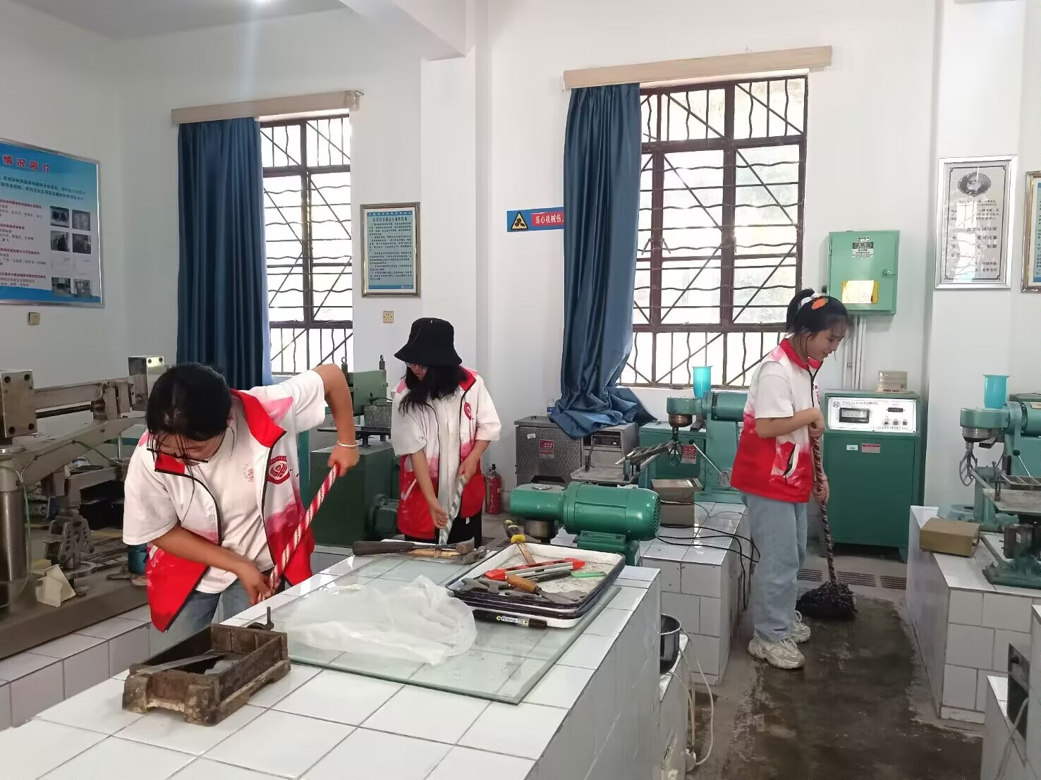 上午10时,40余名志愿者来到结构实验室和土木实训中心,按照实验室老师分工,师生通力合作,认真清扫实训工厂、土工实验室等近10000m2的建筑场,仔细清洁万能试验机、多功能力学试验仪等总价值超1500万余元的实验仪器。