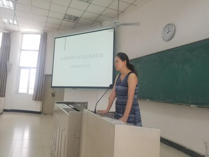 会议伊始,湛红艳书记简要介绍近几年学院建筑学学生进行古建筑学生测绘实习情况,并对此次2018年古建筑测绘实习进行工作部署、强调实习期间注意事项,并鼓励学生积极参与此次学习。随后,李丽华老师对学生需在实习过程中完成的学习任务情况进行讲解和说明,对此次参与同学的分组和任务分配情况作简要阐述。接着,由建筑学与城乡规划教研室主任庄红老师对本次2015级建筑学学生古建筑测绘实习和学习要求作简要说明,并强调学生在实习期间要遵守相关规定完成此次古建筑测绘实习任务。