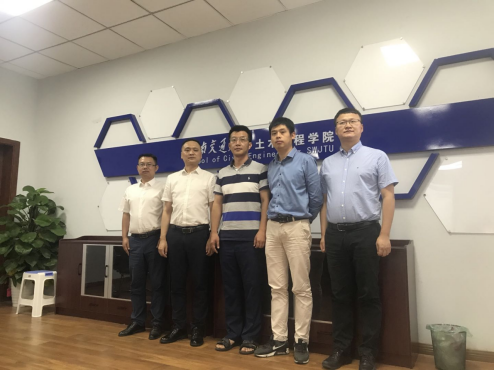 6月22日上午,土建学院院长孙金坤、副院长郭飞飞赴西南交通大学土木工程学院调研。西南交通大学土木工程学院副院长富海鹰教授、副院长陈嵘教授、院长助理徐腾飞、任亚东副教授接待了孙院长一行,并就土木工程专业工程教育认证、智能建造专业的建设情况进行了细致指导和交流。