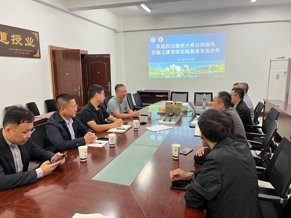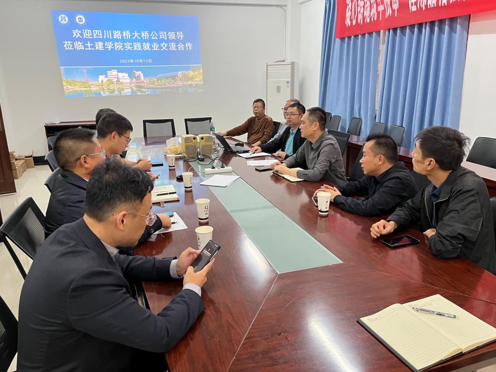 2023年10月13日下午,四川路桥集团大桥工程分公司总工程师李东山一行3人来我院洽谈实践就业合作相关事宜。攀枝花市交通运输综合行政执法大队大队长谢丹、学院院长孙金坤、副院长郭飞飞以及吴峰等4名专业教师参加了座谈交流。