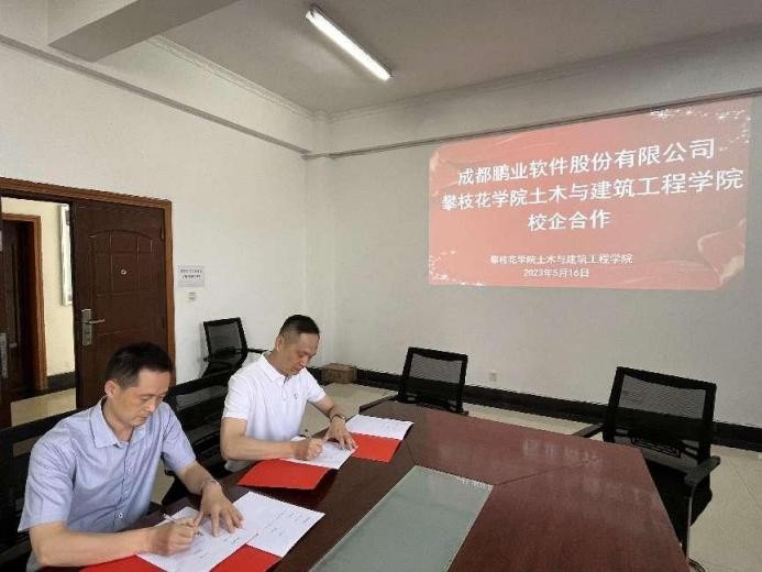 5月16日上午,成都鹏业软件股份有限公司黄剑一行来到攀枝花学院土木与建筑工程学院基于前期对接的基础上,与学院正式签署了校企合作协议,进行技术交流。双方将在软件技术、人才培养和科研等方面开展深度合作。