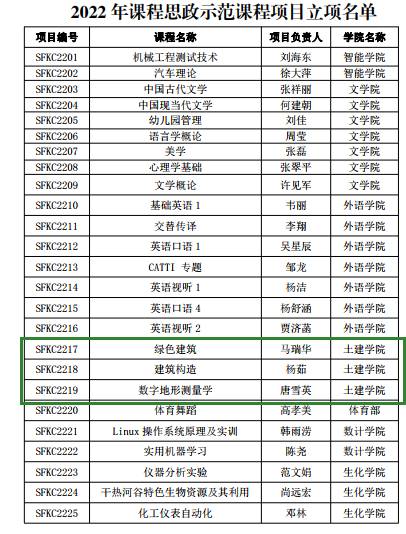 我院马瑞华老师的《绿色建筑》、杨茹老师的《建筑构造》、唐雪英老师的《数字地形测量学》三门课程立项校级