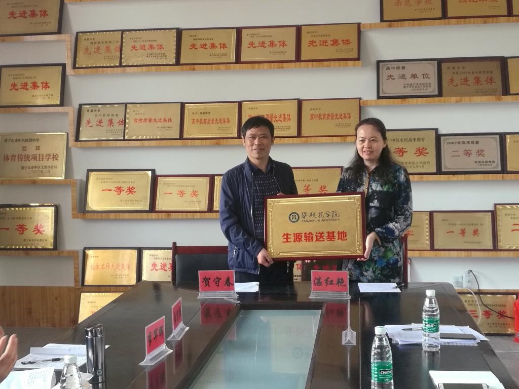 贺守春代表学校介绍了西眉中学的基本情况、办学历史,热烈欢迎攀枝花学院到学校签订生源基地协议并授牌。湛红艳介绍了学校、土建学院的基本情况和学院的人才培养、专业特色,感谢西眉中学为学校输送了40多名优秀学生,希望通过签订生源基地和授牌,加强对学校的宣传,鼓励更多的学生报考我校。
