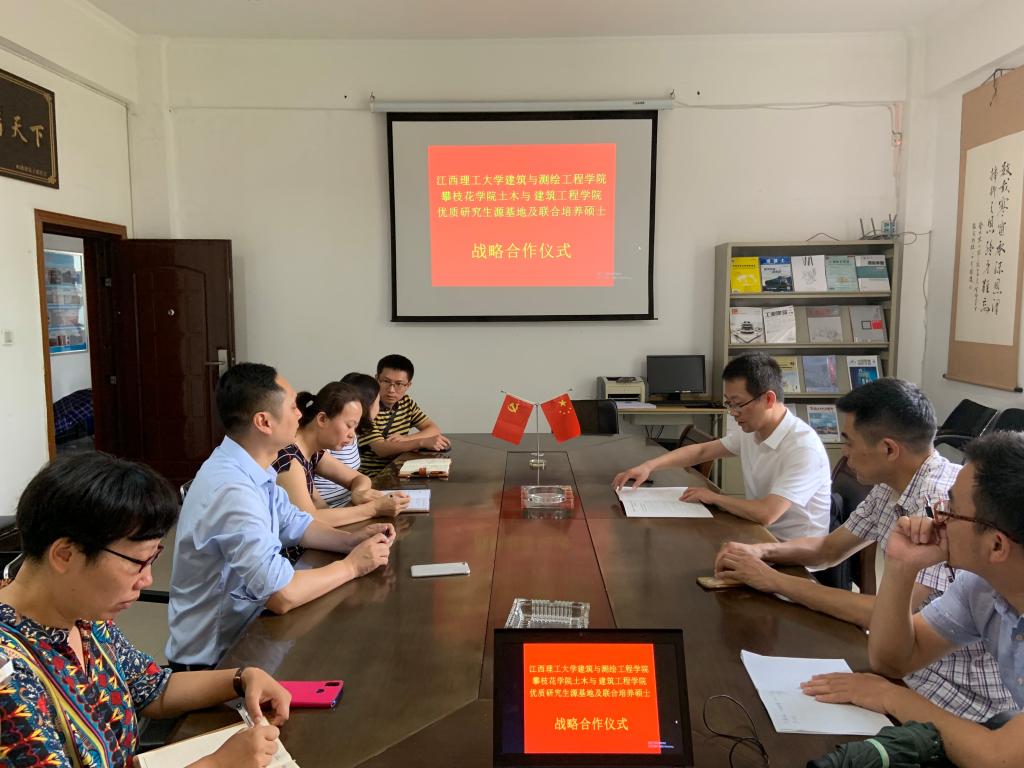 朱易春副院长从历史沿革、学科发展、师资队伍、人才培养等方面全面介绍了江西理工大学建筑与测绘工程学院发展现状,并着重介绍了近年来在学科建设和人才队伍建设中取得的优异成绩。我院院长孙金坤详细介绍了土建学院的历史和现状,并表示非常愿意和江西理工大学保持良好的合作关系。会上,双方代表共同签署了优秀研究生生源基地建设协议书。