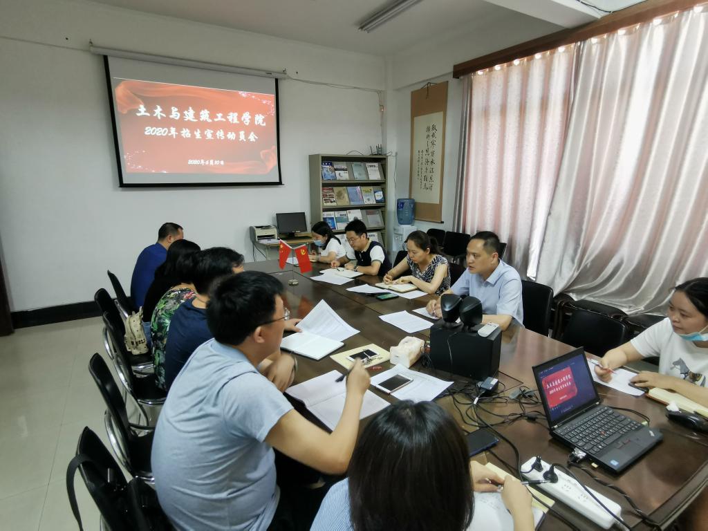 6月10日下午3:10,土建学院在励志楼1会议室召开2020年招生宣传动员会。学院领导班子成员、各科室负责人参加了会议。