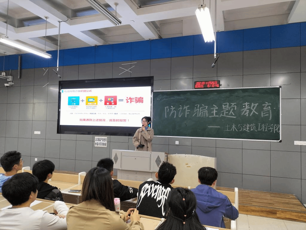 为了提高学生们的安全防范意识,树立正确的消费观,减少校园电信诈骗受害和不良校园贷等情况的发生。土木与建筑工程学院于2021年11月26日开展“远离不良校园贷,谨防电信诈骗”专题教育活动,学院分团委学生会负责人杜郁美和全体2021级学生参加此次活动。