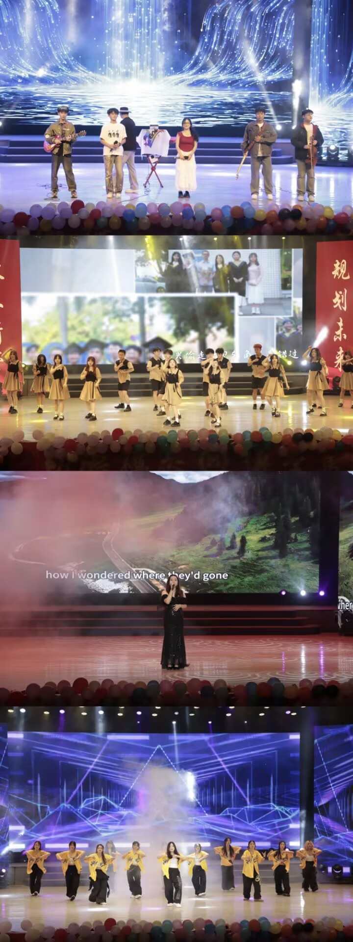 毕业晚会,节目分为“拾光记”“启新程”两个篇章,以说唱、民乐演奏、现代舞、英文独唱、青春舞蹈、乐队演奏和歌曲合唱等多种表演形式,表达了对大学生活的不舍和对未来征程的憧憬。