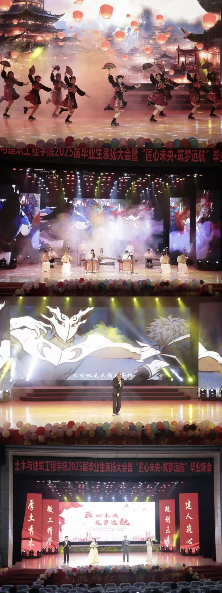 晚会在学院2010届工程管理专业校友、青年脱口秀演员贾耗为2025届毕业生送祝福视频中落下帷幕。“匠心未央•逐梦远航”,祝愿2025届毕业生以更加坚定的信念和更加饱满的热情,去追逐自己的远大梦想,去书写自己的辉煌篇章。