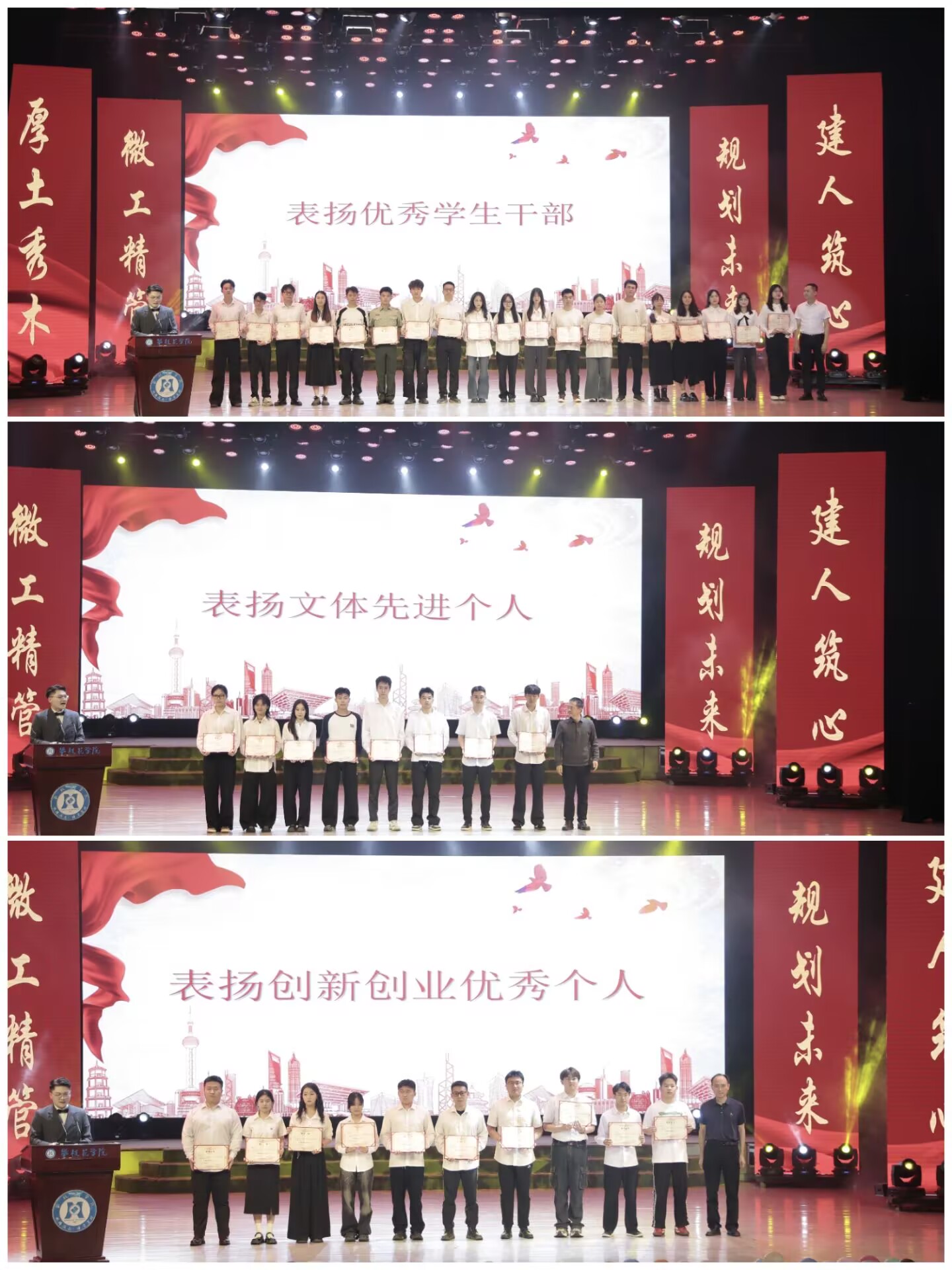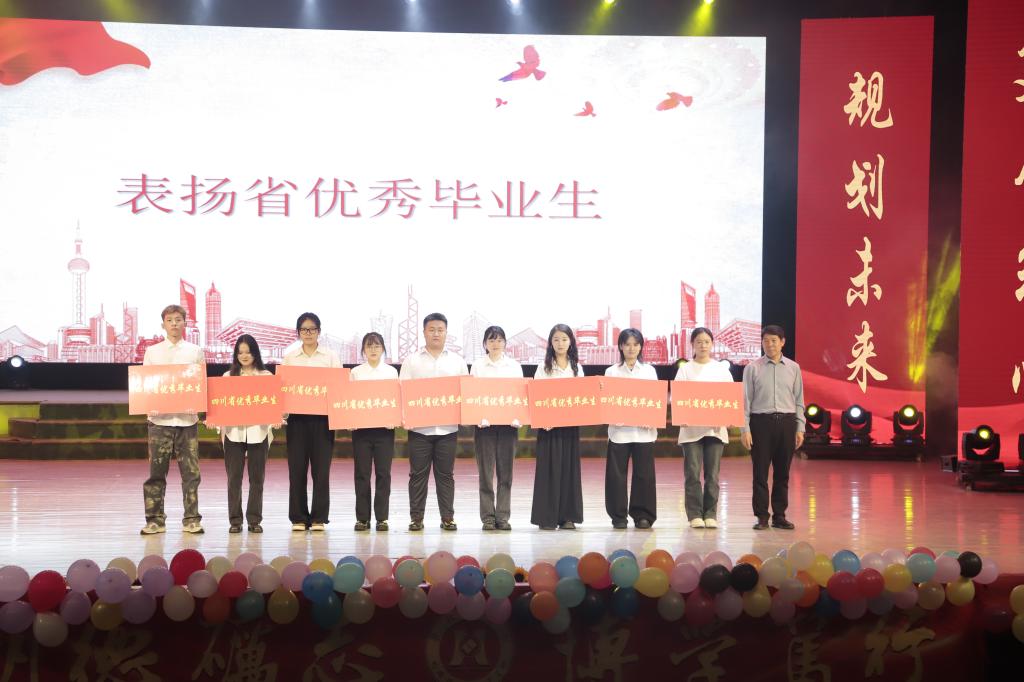 表扬大会,学院对2025届毕业生中涌现的“文体先进个人”、“创新创业优秀个人”、“优秀学生干部”、“四川省优秀毕业生”、“考研上岸同学”进行表扬祝贺,李兴贵校长、朱云生副校长、刘玳炜副处长和学院党政领导为受表扬毕业生颁奖。表扬大会号召全体在校学生以优秀毕业生为榜样,树立远大理想,刻苦学习,勤奋努力,立志成才,为建设阳光健美丽的应用型一流大学而奋斗。