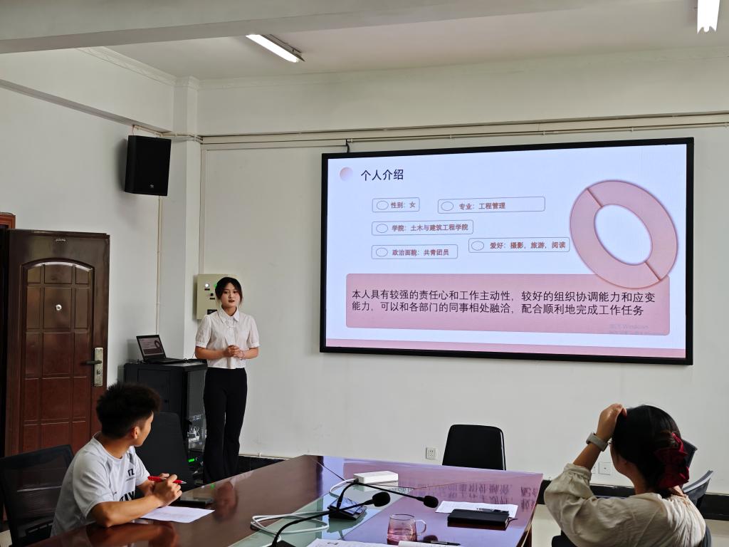 主席团各候选人依次进行个人展示,介绍自身在学业、学生工作、社会实践等方面的经历和积累的经验,阐述了自身具备的核心能力与岗位的匹配度,并对当前组织发展面临的关键问题提出调整建议。