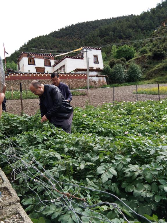座谈会后,土建学院为结对帮扶贫困学生捐助了学费,彭徐一行查看了学校在热郎宫村试点培育的土豆新品种生长情况。