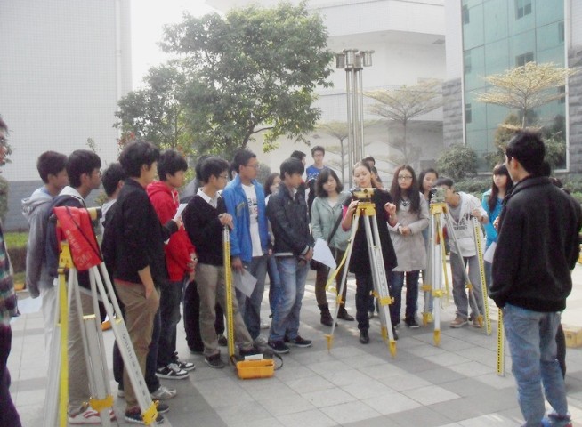 2012年10月18日上午9点,为了加强工程管理学会会员对工程测量的操作能力,本学会在C教举行了以“盛世中华,创新实践”为主题的工程测量培训活动。特邀指导老师唐雪英和大三学长做现场指导。