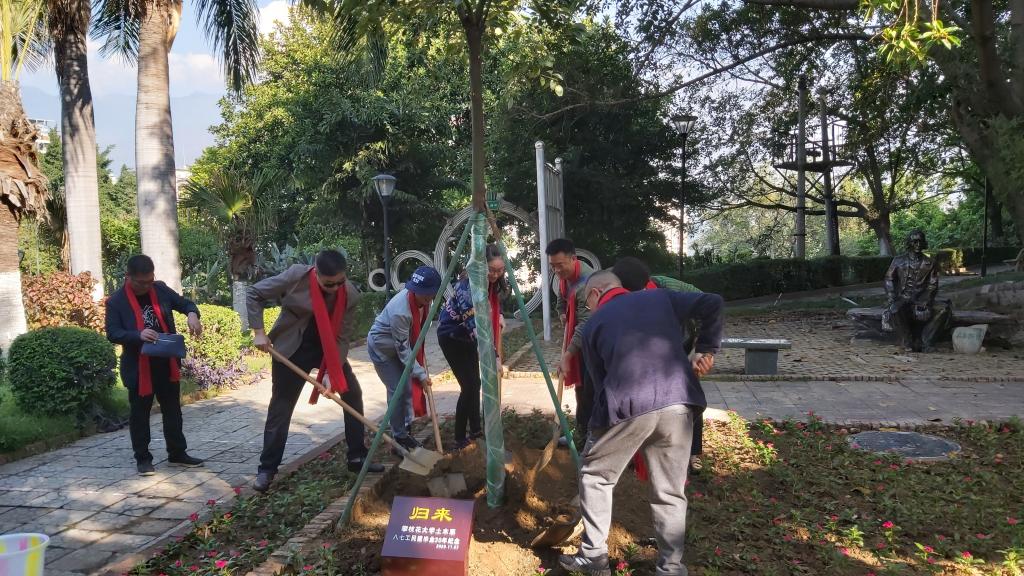 校友们参观了校史馆,深入了解了学校30多年的办学历程。参观了校园,在原来学习、生活的场所合影留念,在明德楼旁以“归来”为主题,植下了一颗表达他们对学校和老师感恩的香樟树。