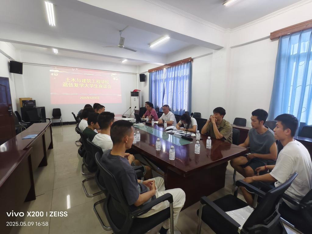 5月9日下午,在励志楼103会议室,学院召开2025年上半年退伍复学大学生座谈会,学院分管学生工作领导、学生科科长、辅导员代表及13名退伍复学大学生参加座谈。