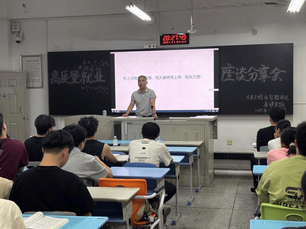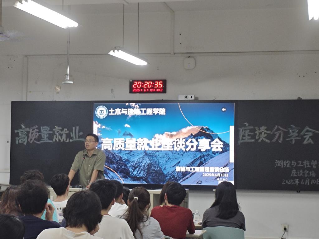 2025年6月10日,土建学院在尚学楼304、306、308举办高质量就业交流分享会。学院分管学生工作领导、学生科长、辅导员代表及大二、大三150余名同学参加。