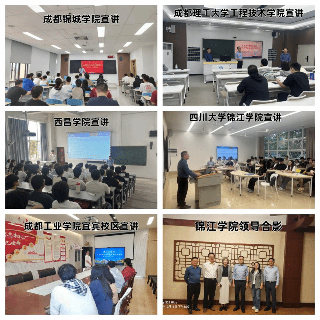 近日,为进一步扩大土木水利专业招生覆盖面、吸引优质生源,攀枝花学院土木与建筑工程学院组织专项宣讲团,在院长孙金坤的带领下,汪杰、袁蠡两位专业教师协同参与,先后赴西昌学院、成都工业学院宜宾校区、成都理工大学工程技术学院、成都锦城学院、四川大学锦江学院五所高校,开展土木水利专业研究生招生宣讲活动。