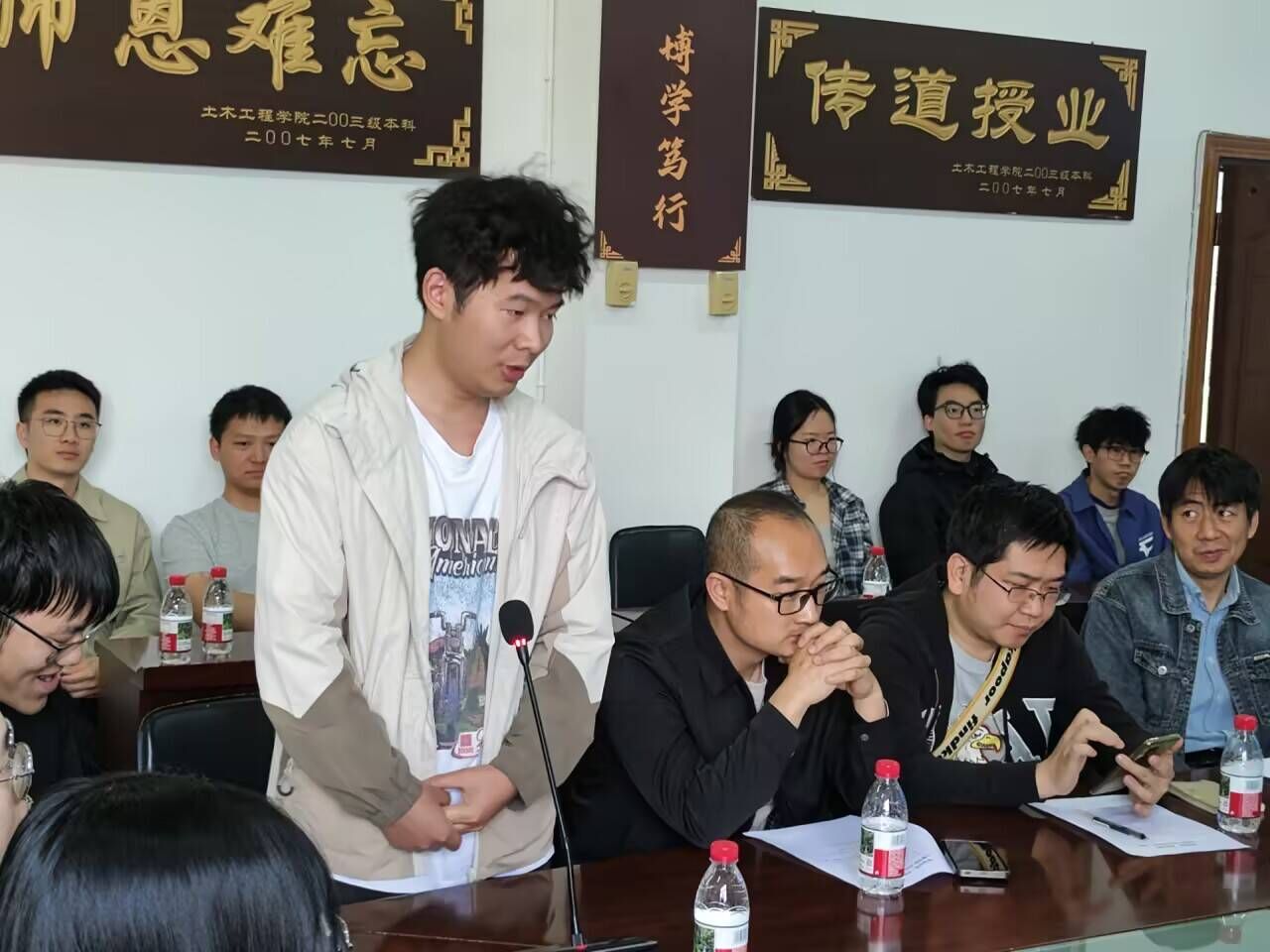 交流环节,研究生导师代表汪杰、赵继涛分别学院介绍了学院研究生教育教学、人才培养和科研创新等情况,并围绕复试准备作经验指导,鼓励学生们积极调剂本学院;学生代表徐德伟、杨家勇等分享了个人考研心得体会。
