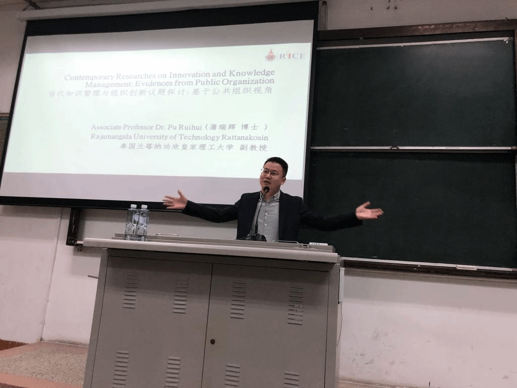 2019年10月24日晚,由攀枝花学院科技处主办,国际交流与合作处、土木与建筑工程学院协办的“当代知识管理与组织创新议题探讨: 基于公共组织视角”主题讲座于第一教学楼1-1教室举办。泰国兰塔纳功欣皇家理工大学管理学副教授、博士生导师蒲瑞辉(如图)担任主讲人,老师代表及学生共计200余人,共同参与本次学术讲座。