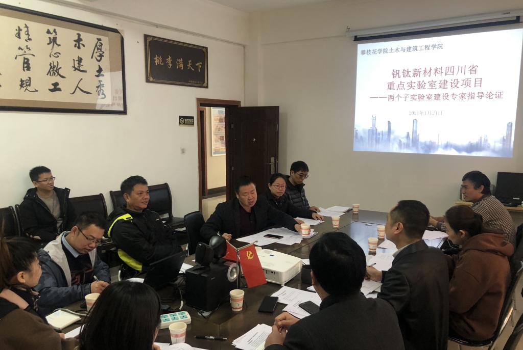 2021年1月24日上午在励志楼111会议室,我院组织召开“钒钛新材料四川省实验室”建设项目子实验室建设专家指导论证会,会议邀请到了攀钢集团工程技术有限公司周旭教授和攀枝花市节能绿建中心李兵高工两位专家,我院党委书记湛红艳,院长孙金坤,实验中心主任郭飞飞,土木工程教研室主任何胡军以及实验室建设小组成员马瑞华、刘静等教师代表参加了会议。