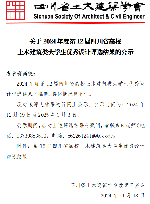 我院在第12届四川省高校土木建筑类大学生优秀设计评选中再获佳绩‌